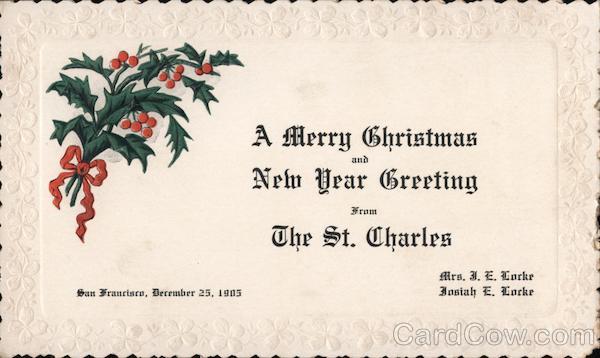 A Merry Ghristmas New Year Grerting The St. Charles Mrs. I. E. Locke Josiah E. Locke San Francisco, December 25, 1905