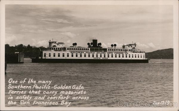 Front: SOUTHERN PACIFIC GOLDEN GATE FERRIES, LTD. SANTA ROSA One of the many Southern Pacific-Golden Gate Ferries thet carry motorists in safety and comfort across the San Francisco Bay Zan1219 Back: گے GENUINE PHOTOGRAPH by Zan of Tamalpais