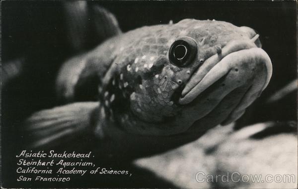 Front: Asiatic Snakehead . Steinhart Aquarium, California Academy of Sciences , Back: PHOTO POST GARD --Kodak SA RE -- Paper