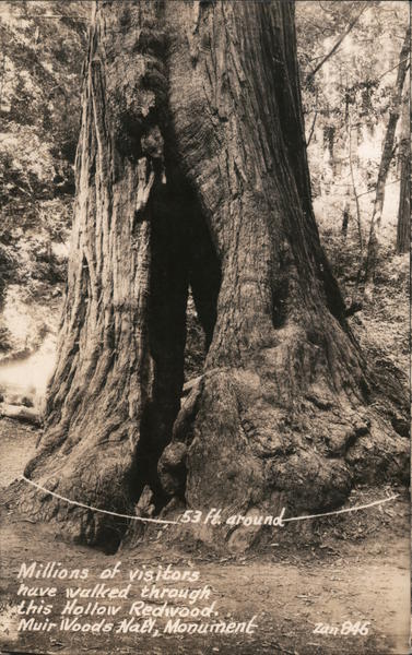 53 F around Millions of visitors huve valked through this Hollow Redivood. Muir iVoods Natl, Monument Zan 846