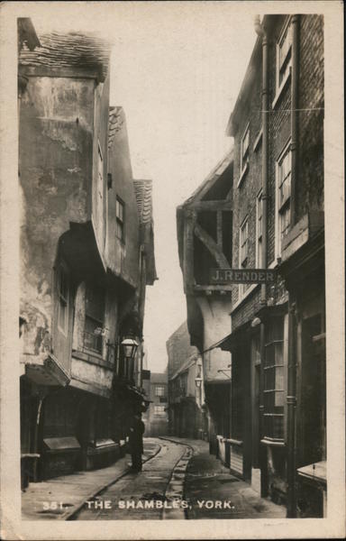 Front: J.RENDER RTER 351 THE SHAMBLES, YORK. Back: POŚT eoste LARÓ STAM ARO TIST LALA. V per tram ****** orang