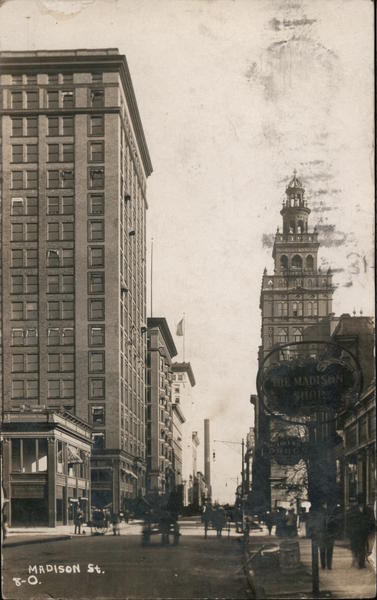 Front: se THE MADISON SHOP DINHEL DRU MADISON St. 8-0. Back: Co. OR TWEDST TES OF JUNTE Ica que POST Ć Agose 908 1206 FRANKLINI EDW. M, WRIGHT 221 SUMMIT ST. TOLEDO, O. Staring a mi thius Mayer 2 June Rawlins Muza