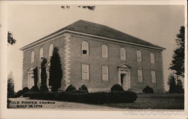 Front: OLD POHICK CHURCH BUILT IN IT73 Back: View of the south side of the church and the old front doorway through which Wash- ington, Mason and other notables entered for worship Virginia