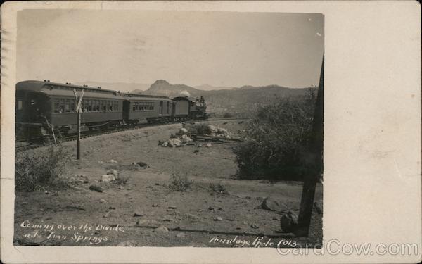 Front: Comny ak Iron Springs over 1he Divide Back: POSTEARD 09 19 ARIZ Published for Brisley Drug Co., Prescott, Ariz. out but dinte Disha at ber Miss Dife Flord ZIG WY VIA Sy Lahir linnan marger 31
