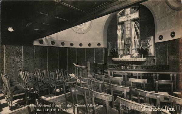 Front: For those seeking Spiritual Peace the "Church Afloat" on the ILE DE FRANCE. grench line Back: The Garraway Company, Rutherford. New jersey Post Gara