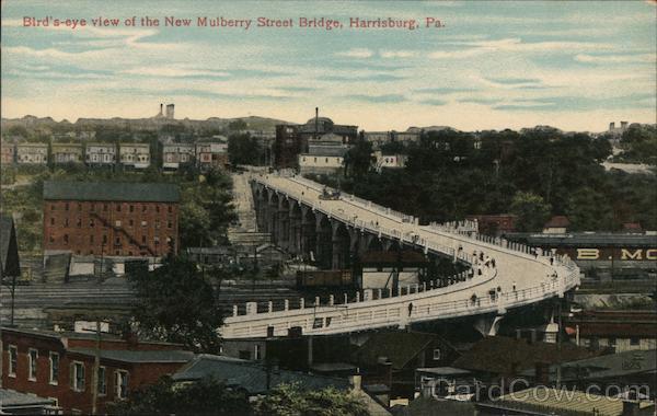 Front: Bird's-eye view of the New Mulberry Street Bridge, Harrisburg, Pa. B.MC 1823 Back: SOUVO CHROME SUPERIOR QUALITY FOREIGN- PUBLISHED BY SOUVENIR POST CARD COMPANY. PRINTED IN NEW YORK. THIS SPACE MAY BE USED FOR MESSAGE