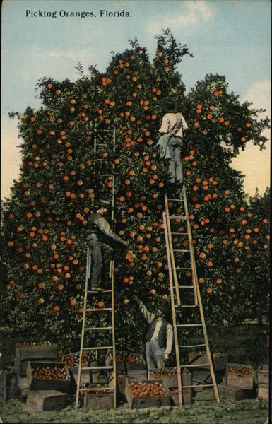 Front: Picking Oranges, Florida. Back: PUB. BY THE ♡ H. & W.B ♡ ♡ Jacksonville Fla. Drew and Island Possessions Cuba, Canada and Со FOR CORRESPONDENCE ONLY ARTISTIC FLORIDA A-21379 IN GOD