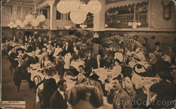 Front: DANTE ITALIAN RESTAURANT $36 Beday, San Frandisco Back: in DANTE ITALIAN RESTAURANT 536 Broadway, San Francisco, Cal. CANESSA PRINT, 708 MONTGOMERY ST.