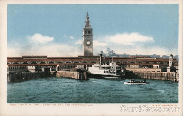 Front: UD 8109. FERRY BUILDING FROM THE BAY, SAN FRANCISCO, CAL. DETROIT PUBLISHING CO. Back: 6- AND CANADA, FOREIGN, Two CENTS.