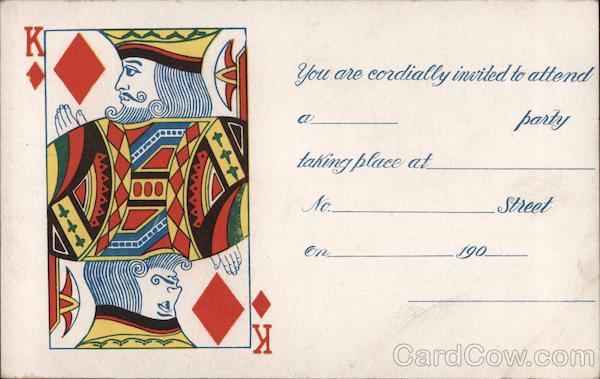 Front: You are cordially inerited to attend party taking place at 000 No. Street On 190_ Back: correspondence. I.P.C.