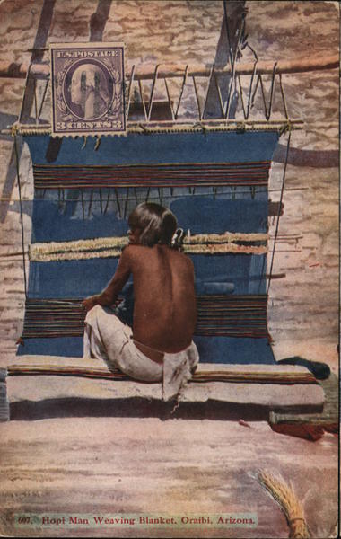607 Hopi Man Weaving Blanket. Oraibi, Arizona.