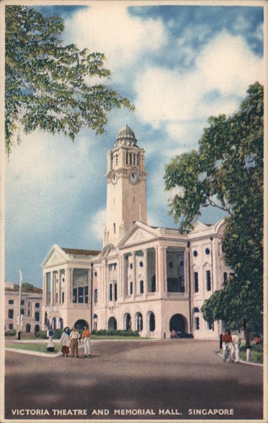 Front: VICTORIA THEATRE AND MEMORIAL HALL, SINGAPORE Back: COLORGRAVURE BY J. ARTHUR DIXON IN ENGLAND ISLE OF WIGHT ENGLAND مع "The It is known as Town Hall and Victorici Memorial victoria Theatre. Hall.on or