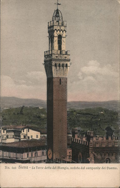 Front: No. 503 Siena La Torre detta del Mangia, veduta dal campanile del Duomo. Back: CARTOLINA POSTALE ITALIANA (CARTE POSTALE d'ITALIE) Edit. Ditta S. Venturini, Siena - Cartoleria e Legatoria di libri.