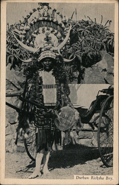 Front: Durban Ricksha Boy. Back: Copyright. J.S.&W.LTD, Published by Continental Film & Photo Studio, Durban Victory