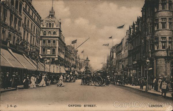 Front: PETER ROBNSON T00 WANT COOD DOG LSON FRIS OR 4 LONDON. OXFORD STREET. J. S. 47. Back: gu id. 1d. THIS SPACE MAY BE USED FOR COMMUNICATION (See Post OFFICE GUIDE) Samuels, Limited, 150 and 84, Strand, and 97a, Regent Street.