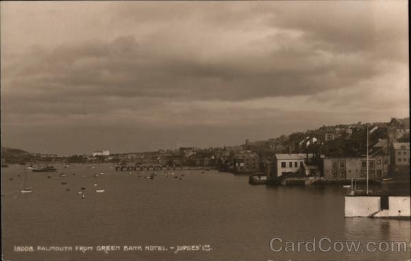 Front: 18008. FALMOUTH FROM GREEN BANK HOTEL-JUDGES . Back: POSTCARD PICTURE BY JUDGES' LTD., HASTINGS ENGLAND GREETINGS AND GOOD WISHES