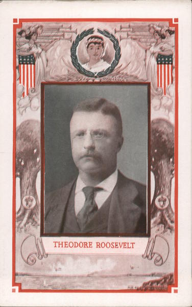 26th President of the United States; born in New York Oct. 27th, 1858; Resided on Rancy in N. Dak. 1884-6; Became U.S. Civil Service Commr. in 1889; President New York Police Board 1895-7; Asst. Secy, Navy, United States, 1897-8; Organized 1st U.S. Cav. Vols. (popularly known as Roosevelt's Rough Riders); Elected Gov. of New York Jan. 1, 1898 and then Vice Presidency on death of William McKinley, Sept. 14th, 1901; elected President of the United States, Nov. 8th, 1904 by largest popular majority ever accorded a candidate. Is a distinguished author and fearless hunter. From the Darlene Thorne Collection |