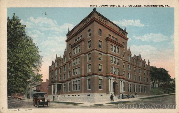Front: HAYS DORMITORY, W. & J. COLLEGE, WASHINGTON, PA. (2) 77 11011 cor Back: FOR WRITING MESSAGES. R-71490 RR STTSBURGH AND CANADA. PA PUBLISHED BY I. ROBBINS & SON, PITTSBURGH, PA. Randson Scan