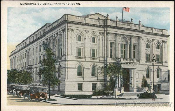 Front: MUNICIPAL BUILDING, HARTFORD, CONN. Back: / 50 TRIS SPACE FOR WR.TING MESSAGES 143 Pub. by W. & L. Midas, New Haven, Conn.