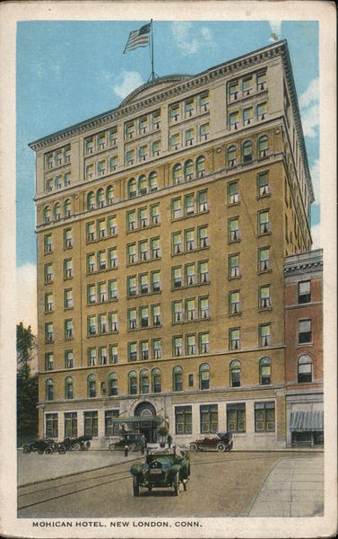 Front: GEESE GEE E FFE FA ERE EEC EE EE E EF MOHICAN HOTEL, NEW LONDON, CONN. LEI LEI Back: A-72082 DOST Fran Mus.lt norill, 1922. 4 story misk е, rhed, ART
