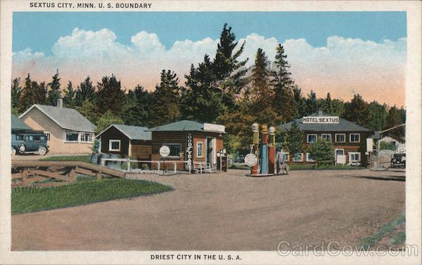 Front: SEXTUS CITY, MINN. U. S. BOUNDARY HOTEL SEXTUS 口 O口 DRIEST CITY IN THE U. S. A. Back: 133172 CAME PO оооооо EOIZO PUB. BY R. D. HANDY, INC., DULUTH, M'NN. O-EX 030