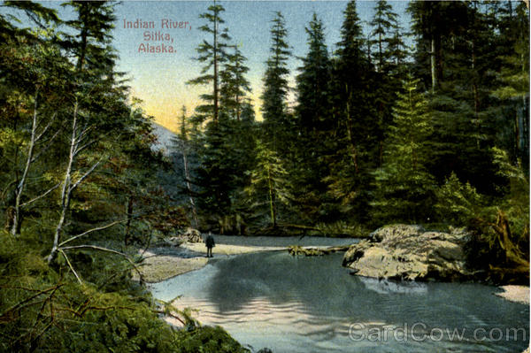 Front: Indian River, Sitka, Alaska. Back: SKA-YUKONE PACIFIC SEATTLE 1909 No. 90 572. Publ. by Portland Post Card Co., Portland, Ore. and Seattle, Wash. (Made in Germany.) Photo by F. H. Nowell. XPOSITIONE Write here. Hore. 1 c M. Cuba 2 e 2732.