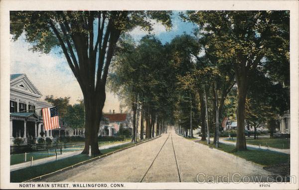Front: NORTH MAIN STREET, WALLINGFORD, CONN. 97076 Back: PUBLISHED BY THE AUGUST SCHMELZER CO., MERIDEN, CONN. C. T. AMERICAN ART COLORED TE