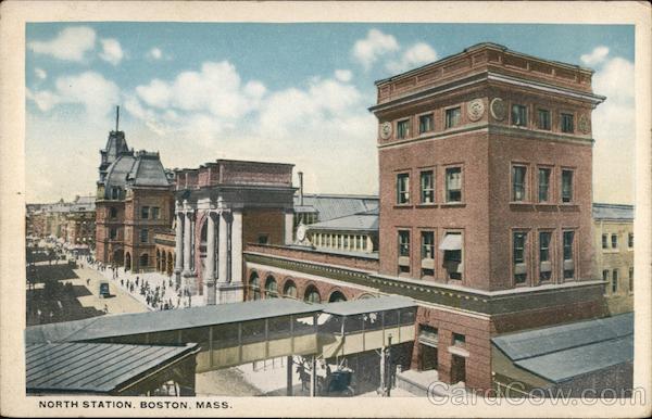 Front: TOCH NORTH STATION. BOSTON, MASS. Back: North Station. ทอง 5) 1 a terminal for all outgoing trains to the North and Eastern parts of the country. through which many hundreds of thousands people travel daily. SPOST Ло