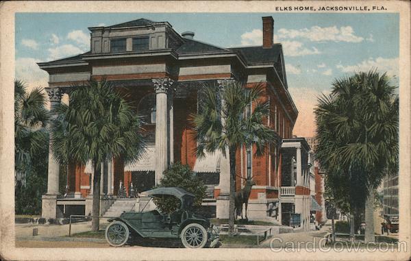 Front: ELKS HOME, JACKSONVILLE, FLA. ER Back: R-31874 tom PUB. BY THE VH XWB & Drew Com FOR CORRESPONDENCE ONLY Jacksonville Fla. 1919 ARTISTIC FLORIDA IN VOD