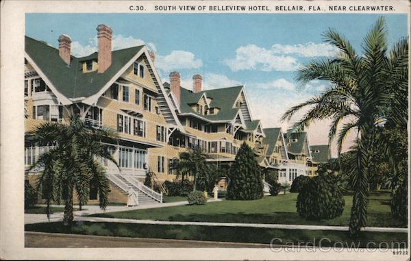 Front: C-30. SOUTH VIEWW OF BELLEVIEW HOTEL, BELLAIR, FLA., NEAR CLEARWATER. 99722 Back: MADE IN USA PUBLISHED BY ASHEVILLE POST CARD CO., ASHEVILLE, N. C. C. T. AMERICAN ART COLORED FLORIDA Polando