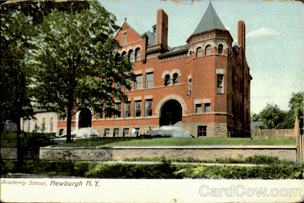 Front: Academy School, Newburgh N. Y. Back: J. Ruben, Newburgh. N. Y. One Cent for United States, and Island Possessions, Cuba, Canada and Mexico.. For Foreign.