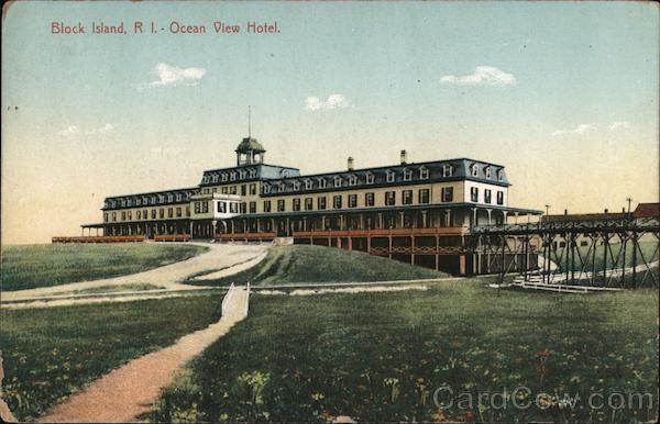 Front: 08D0n h h.h日 H00 Block Island, R. I. - Ocean View Hotel. D00日1.hb h Back: One Cent for United States, and Island Possessions, Cuba, Canada and For Foreign. The Hugh C. Leighton Co., Manufacturers, Portland, Me., U. S. A.(Germany). 30017