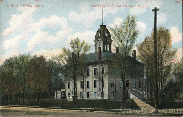 Front: 2349 COURT HOUSE BLDG. GREETINGS FROM KANKAKEE, ILL. Back: One Cent for United States, and Island Possessions, Cuba, Canada and For Fcreign. A. C. Bosselman & Co., New York. ---