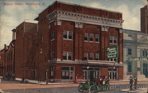 Front: Majestic Theatre. Bloomington. II. Majustic THEATRE Foashionale Vouadeville I.D.LAIN,COAL HH Back: AING 5 PN. 2 ILL ITS We am all is well i with me of - and moving Who S.P. Riesel Eastward - West Plains will write when Igut to cang Mo Tron Eg