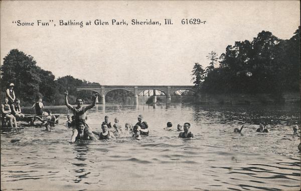Front: "Some Fun", Bathing at Glen Park, Sheridan, Ill. 61629-r Back: POR CORRESPONDENCE OR A CORESS ONLY CAGO ACES