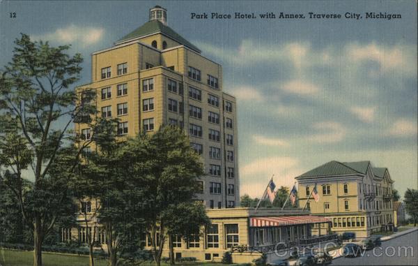 Front: 12 Park Place Hotel, with Annex, Traverse City, Michigan 1 T山 %3D Back: MADE IN U. S. A “TICHNOR QUALITY VIEWS" REG. U.S. PAT, OFF. MADE ONLY BY TICHNOR BROS., INC., BOSTON, MASS. 66507