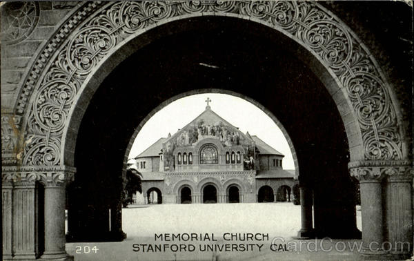 Front: 204 1000 000 MEMORIAL CHURCH STANFORD UNIVERSITY CAL. Back: Dard Jadr S PACIFIC NOVELTY CO. SAN FRANCISCO S