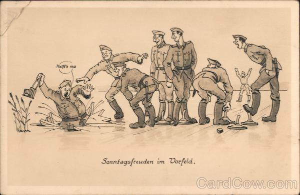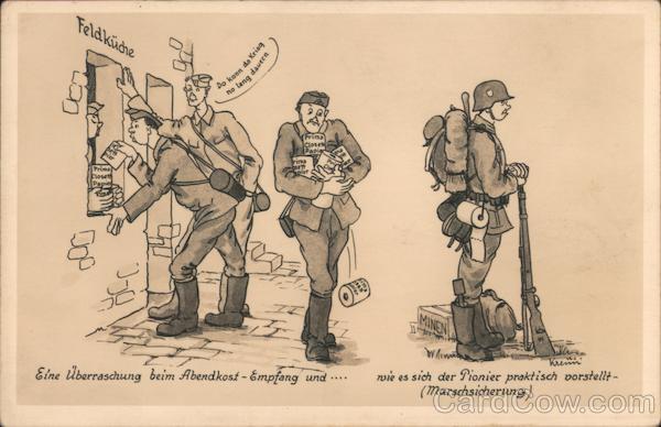 Erste Impfung "Dritte Impfung" Vorbereitung zum winterlichen Stosstrupp. Das letzte Huhn im Vorfeld The First Munich Beer Soldiers drinking too much Löwenbräu. Sonntagsfreuden im Vorfeld Eine Überraschung beim Abendkost-Empfang und ... wie es sich der Pionier praktisch vorstellt (Marschsicherung) |