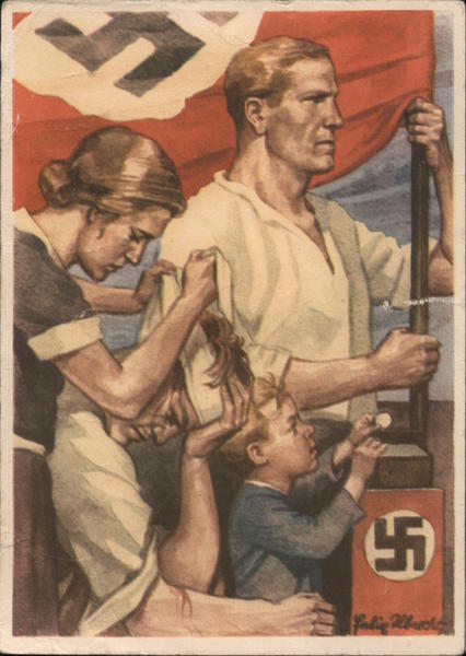 Dpferkarte Wer ſein Voll liebt, beweiſt es durch die Dpfer, die er für dieſes zu bringen bereit iſt. Adolf Hitler. Poſtkarte Nachdruc verboten – Kunſtdruck Edert, Berlin-Schöneberg Entwurf Felix Albrecht, Berlin min/1960