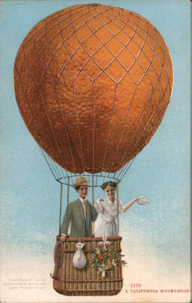 Front: COPYRIGHT 1910 EDWARD H. MITCHELL SAN FRANCISCO. 2199 A CALIFORNIA HONBEYMOON, Back: 100 MADE IN AMERICA BY EDW.H.MITCHELL AT SAN FRANCISCO.CALIFORNIA.