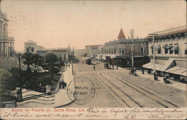 Scene on Fourth st., Santa Rosa, Cal. This is before Mücadipaka