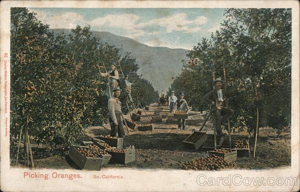 Front: So. California. Picking Oranges. 90 Charles Weidner, Photographer, San Francisco. Back: 14 to United States Canada or Mexico 2ยข to allother Countries.
