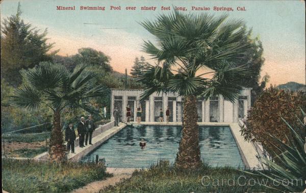 Front: Mineral Swimming Pool over ninety feet long, Paraiso Springs, Cal. Back: Largest Mineral Swimming Pool in California. BRITTON & REY, LITHOGRAPHERS, S.F. PUBLISHERS OF PICTORIAL POST CARDS.