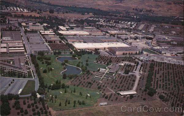 The IBM Homestead (foreground) is part of a large IBM manufacturing and laboratory facility located in San Jose. Customer Executive guests of IBM reside at the Homestead while attending classes of the Data Processing Division Education Center. From the Darlene Thorne Collection |