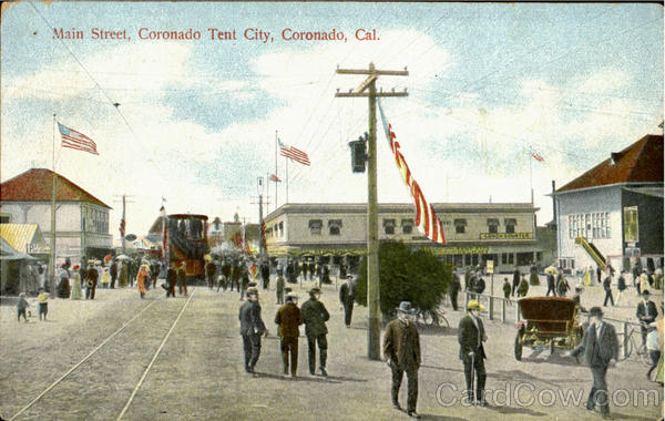 Front: Main Street, Coronado Tent City, Coronado, Cal. LUNCH COUNTER Back: M. Rieder, Publ., Los Angeles, Cal. No. 3999. MADE IN GERMANY.