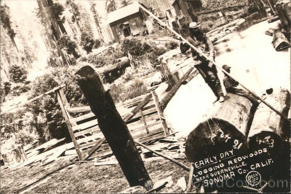 EARLY DAY LOGGING REDWOODS NEAR GUERNEVILLE, SONOMA Co. CALIF, Deck OTO
