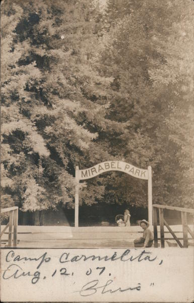 Front: RABEL PARK Camp Carnilita, Cing, 12, 07, Back: CL 225 ZNOSNO HOVLSO 0621NT THAVAA 9021 120 P.NO CALO CORRESPONDENCE IN THIS SPACE VOTRE SA HOS MIS EILINI Miss La Place 1488 Corbett Dan Francisco 0416
