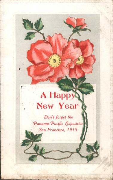 Front: A Happy New Year Don't forget the Panama-Pacific Exposition San Francisco, 1915 Back: TC SANT <7 PM 1909 Some Hello to all มวลม วงกา ปาก pun nok Miss Marnie Miska Beaou Dan Dodge Certy We 1017