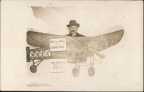 Front: OUT O HELL OFA GOOD TIME XXIKIK INVITES THE WORLD 1915 Back: Α Α Σ ο Α ON >> & STAMP Α Α 2 ο Α -OE