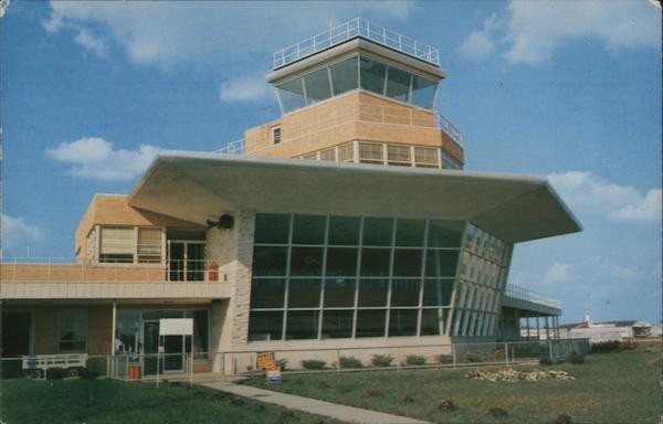 Moline Municipal Airport. An ultra modern building and two Air Lines, United and Braniff with 15 daily flights make this the finest in the midwest. Ektachrome by Rene Briegel Published by Tri-Cities Photo Service, Box 425, Davenport, Iowa 15318